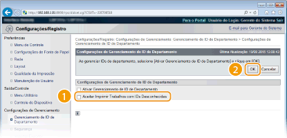 Marque a caixa de seleção [Ativar Gerenciamento de ID de Departamento] e clique em [OK].