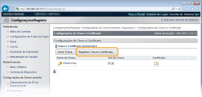 Clique [Registrar Chave e Certificado] ou [Registrar Certificado CA].