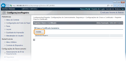 Clique em [Configurações de Chave e Certificado] para instalar um par de chaves ou em [Configurações de Certificado CA] para instalar um certificado de CA.