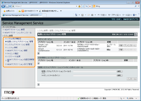 システムアプリケーションの状況表示や開始・停止の操作を行います。