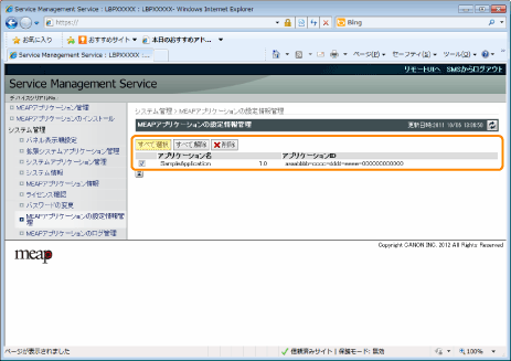 [MEAPアプリケーションの設定情報管理]をクリックします。