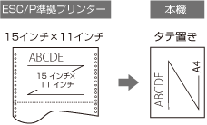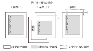 ESC/P準拠プリンターのカットシートフィーダーの用紙エンド検出とほぼ同じ位置、または<ESC/P設定>やコントロールコマンドで設定したページ長になります。 ワイド領域モード