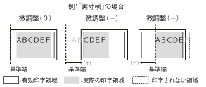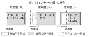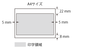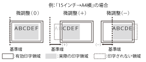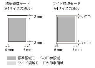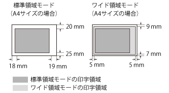 用紙サイズに関係なく、初期状態で345.4 mm(13.6インチ)です(印字領域の右端を超えた場合は、はみ出たデータは印刷されません)。 ワイド領域モード