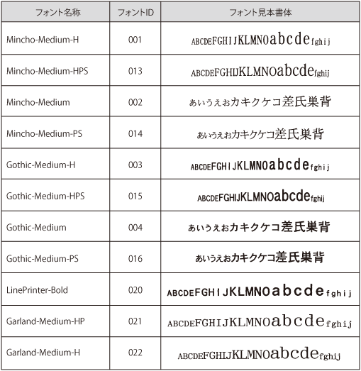 文字セットコード表本機内蔵フォントのコード表(LIPS、ESC/P)が、取扱説明書DVD-ROMの[Fontlist]フォルダーに収められています。詳しくは、[Fontlist]フォルダー内のReadmeファイルを参照してください。