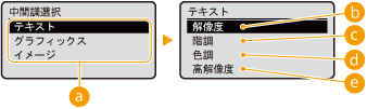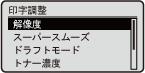 解像度やトナー濃度など、印刷の品質に関する設定項目を一覧で説明します。太字はお買い上げ時の設定です。