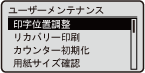 給紙部ごとの印字位置の補正や印刷品質を改善させる設定など、本機の調整に関する設定項目を一覧で説明します。ここでの設定項目は、本機がオフラインのときに変更することができます。太字はお買い上げ時の設定です。