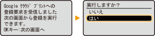 モバイル機器やGoogle Chromeから本機を登録することもできます。登録完了前に本機のディスプレーに以下の確認画面が表示されますので  <はい>  で登録を完了してください。