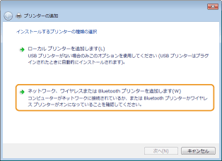 [ネットワーク、ワイヤレスまたはBluetoothプリンターを追加します]をクリックする