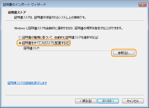 [証明書をすべて次のストアに配置する]を選び、[参照]をクリックする
