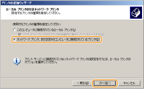 [ネットワークプリンタ、またはほかのコンピュータに接続されているプリンタ]を選び、[次へ]をクリックする