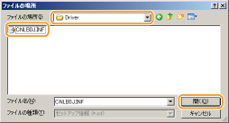 プリンタードライバーが収録されているフォルダーを指定し、INFファイルを選んだあと、[開く]をクリックする