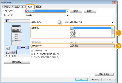 給紙部にセットした用紙のサイズと種類をあらかじめ設定しておく必要があります。