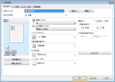 [デバイス] [印刷] 本機のプリンタードライバー [印刷]をタップまたはクリックこの方法で印刷した場合は、使用できる印刷設定は制限されます。