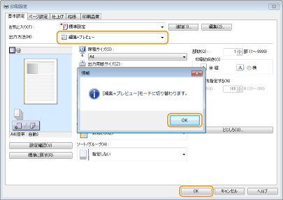 プレビュー画像(実際に印刷したときのイメージ)が表示されます。