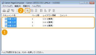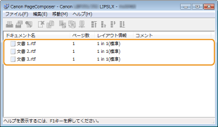 Canon PageComposerという機能を使って、いくつかの文書を1つに結合して、一度に印刷できます。結合した文書に対してまとめて印刷設定ができるので、異なるアプリケーションで作成した文書を結合して、すべてのページを同じサイズの用紙に印刷するといった使いかたもできます。