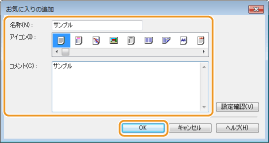 手順1の画面の[お気に入り]右側にある[編集]をクリックすると、登録した「お気に入り」の名称、アイコン、コメントを変更できます。なお、お買い上げ時にあらかじめ登録されている「お気に入り」項目は編集できません。
