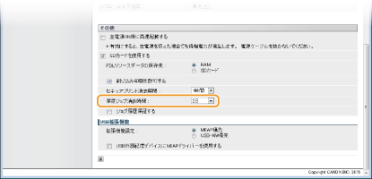 SDカードに保存したデータはお買い上げ時には、3日後に自動的に削除されるように設定されています。保存期間を変更したり、自動的に削除されないようにしたりする場合はリモートUIで設定を変更してください。なお手動で削除することもできます。