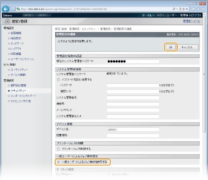 [一般ユーザーによるジョブ操作を許可する]にチェックマークを付け、[OK]をクリックする