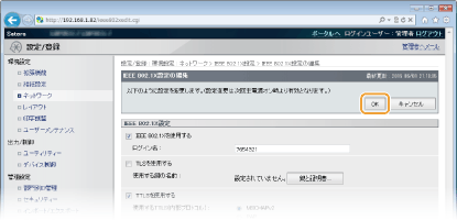 操作パネルで設定するとき操作パネルの設定メニューからIEEE 802.1X認証を有効/無効に切り替えることもできます。IEEE802.1X