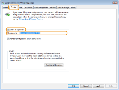 Installation of the additional drivers starts. Wait until the [Sharing] tab is displayed back.