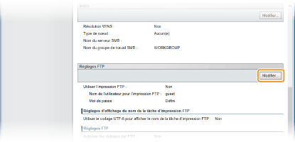 Cliquez sur [Modifier] dans [Réglages FTP].