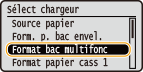 pour sélectionner <Format bac multifonc> et appuyez sur