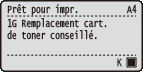 ( ).Le message affiché dépend du réglage de <Etape avertissement> dans le menu des réglages du panneau de commande. Etape avertissement