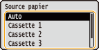 Sélectionnez l'alimentation papier pour laquelle vous souhaitez vérifier la position d'impression, et appuyez sur