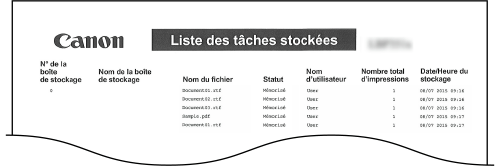 Vous pouvez imprimer sous forme de liste un journal des impressions des documents stockés dans la carte SD installée sur l'appareil.