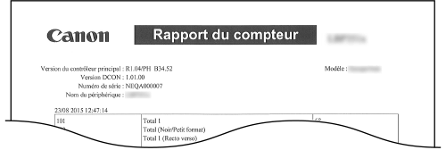Vous pouvez imprimer un rapport global du nombre de pages imprimées pour chaque compteur.