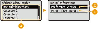 <Préférence vitesse> ou <Prior. face impres.>