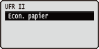 Cette section décrit les réglages disponibles lors de l'utilisation d'UFR II avec les commandes de contrôle. Les réglages par défaut sont signalés par une croix (