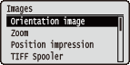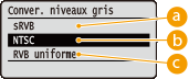 Astérisques (*)Les réglages signalés par un astérisque (*) ne sont pas affichés si certains autres réglages sont utilisés ou si une carte SD en option est installée sur l'appareil.