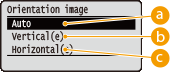 Si le réglage spécifié (<Vertical(e)> ou <Horizontal(e)>) n'est pas adapté à l'orientation de l'image, l'image imprimée est réduite.