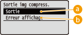 Ce réglage est valide lorsque <Mode img compressé> est réglé sur <Priorité sortie> ou lorsque <Carte SD> (Carte SD) est réglé sur <Oui>.