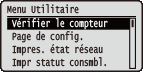 En plus de cette option, vous pouvez également consulter la valeur indiquée au compteur en sélectionnant <Vérifier le compteur> dans le Menu Configuration.