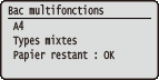 Sélectionnez cette option pour afficher le format et le type de papier spécifiés et le niveau de papier restant pour chaque alimentation papier.