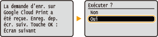 Vous pouvez également enregistrer l'appareil depuis un terminal mobile ou Google Chrome. L'écran de l'appareil affiche l'écran de confirmation ci-après avant la fin de l'enregistrement. Sélectionnez  <Oui>  pour terminer l'enregistrement.