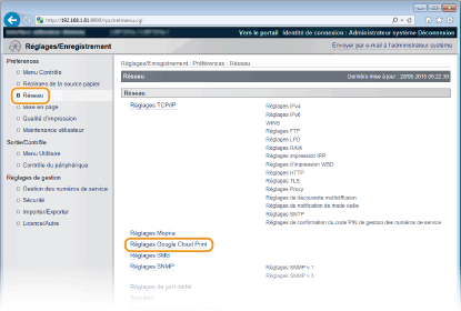 [Réglages Google Cloud Print].