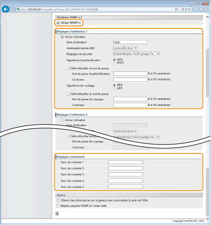 Définissez les réglages SNMPv3.