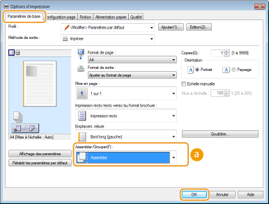Si vous sélectionnez [Désactivé], le tri des impressions dépend du paramètre défini dans l'application.