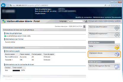 Vous pouvez imprimer un fichier depuis un navigateur Web (interface utilisateur distante) sans ouvrir le fichier. Vous pouvez aussi imprimer un fichier PDF localisé sur le Web en spécifiant juste son URL.