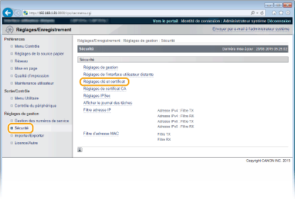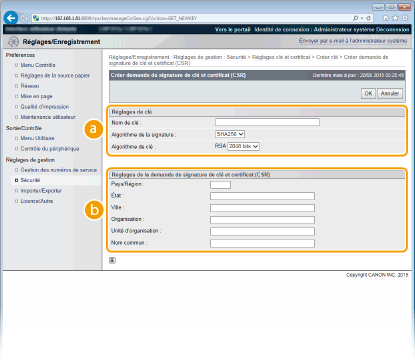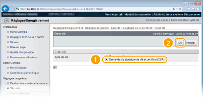 [Réglages de la demande de signature de clé et certificat (CSR)]
