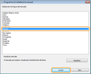 Selezionare la lingua e fare clic su [Visualizza] in "Visualizza manuale".