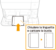 In questa sezione viene descritto come caricare le buste con l'orientamento preferito, oltre alle procedure necessarie da eseguire prima di caricare le buste. Per una descrizione della procedura generale di caricamento buste nel vassoio multiuso o nell'alimentatore buste opzionale, vedere quanto segue.