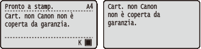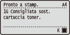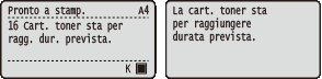 Quando viene visualizzato il messaggio <La cart. toner sta per raggiungere durata prevista.>, la stampa viene temporaneamente interrotta. Per riprendere la stampa, premere
