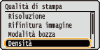 Selezionare <Densità>, quindi premere
