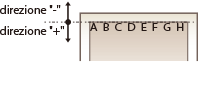 Dopo aver verificare la direzione e la distanza da regolare, specificare una posizione di stampa regolata. È possibile regolare la posizione di stampa nell'intervallo da Da -5,0 a +5,0 mm con incrementi di 0,1 mm in entrambe le direzioni: verticale e orizzontale.