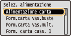Selezionare l'alimentazione carta per la quale si vuole verificare la posizione di stampa, quindi premere