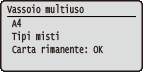Selezionare per visualizzare il formato e il tipo di carta attualmente specificati, nonché il livello di carta restante per ciascuna alimentazione carta.